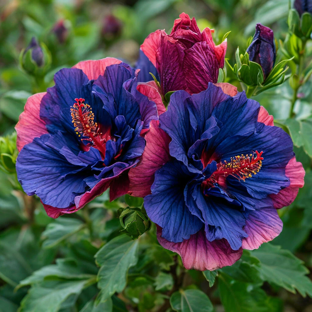 Гибискус “Роуз Шайн” – это истинное произведение искусства, созданное самой природой. Представьте: крупные, махровые цветки, словно пушистые шары, окрашенные в нежные оттенки синего (важно отметить, что гибискусы с истинно синим цветом – большая редкость, поэтому оттенок может быть ближе к голубому или лавандовому). И среди этой синевы – отдельные розовые лепестки, словно искорки зари, добавляющие цветку неповторимый шарм и очарование. Этот гибискус создан для тех, кто ценит нежность, оригинальность и красоту в каждой детали.